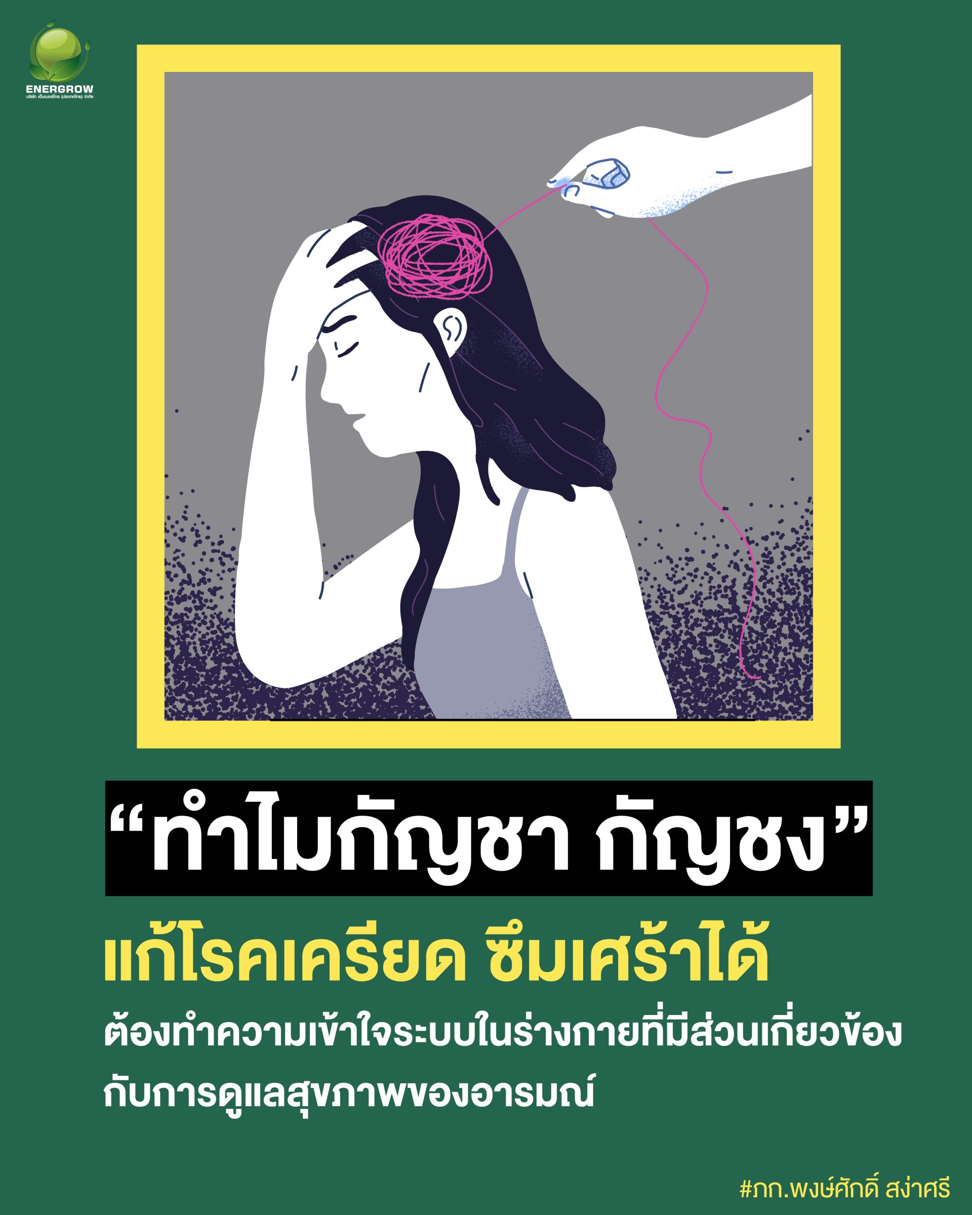 กัญชา กัญชง จะสามารถแก้โรคซึมเศร้า หรือ ความเครียดได้หรือไม่นั้น ตามที่เคยมีรายงานของผู้ที่เคยใช้ ก่อนอื่นต้องทำความเข้าใจระบบในร่างกายที่มีส่วนเกี่ยวข้องกับการดูแลสุขภาพของอารมณ์ หรือ เข้าใจง่ายๆ ก็คือว่า ก่อนจะไปรู้ว่า กัญชา กัญชง สามารถแก้เครียด ลดซึมเศร้าได้ไหม ก็ต้องทำความเข้าใจร่างกายก่อนว่า เวลาที่เครียด หรือ ซึมเศร้า ร่างกายเกิดอะไรขึ้น มีการทำงานของร่างกายหรือระบบอะไรในร่ากายที่ผิดปกติไป หรือ มีสารสื่อประสาทชนิดไหนในร่างกาย ที่ก่อให้เกิดภาวะเครียด ซึมเศร้า เป็นต้น