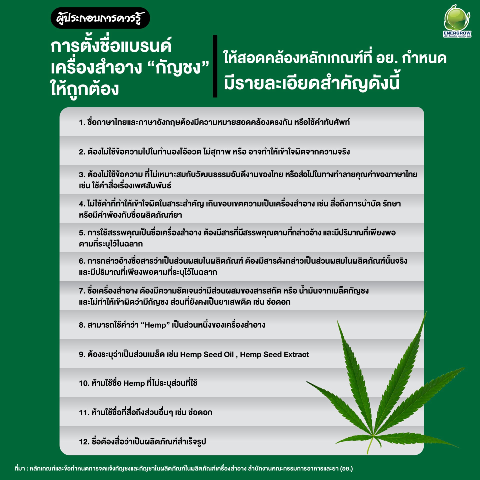 10. ห้ามใช้ชื่อ Hemp ที่ไม่ระบุส่วนที่ใช้