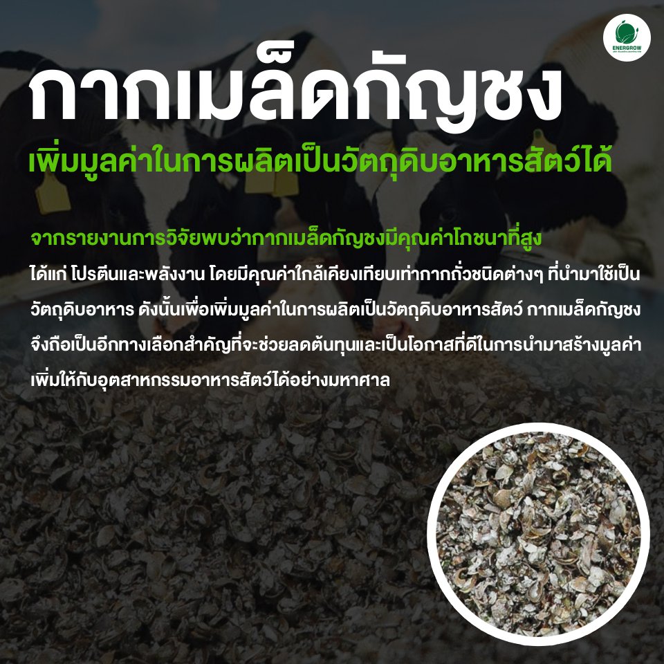 จากรายงานการวิจัยพบว่ากากเมล็ดกัญชงมีคุณค่าโภชนาที่สูง ได้แก่ โปรตีนและพลังงาน โดยมีคุณค่าใกล้เคียงเทียบเท่ากากถั่วชนิดต่างๆ ที่นำมาใช้เป็นวัตถุดิบอาหาร ดังนั้นเพื่อเพิ่มมูลค่าในการผลิตเป็นวัตถุดิบอาหารสัตว์ กากเมล็ดกัญชงจึงถือเป็นอีกทางเลือกสำคัญที่จะช่วยลดต้นทุนและเป็นโอกาสที่ดีในการนำมาสร้างมูลค่าเพิ่มให้กับอุตสาหกรรมอาหารสัตว์ได้อย่างมหาศาล