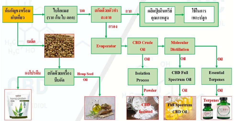 To be a source of hemp extracts and herbal extracts as a raw material with international standards to factories in the downstream industries both in Thailand and overseas.